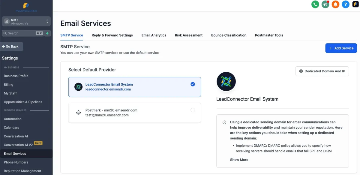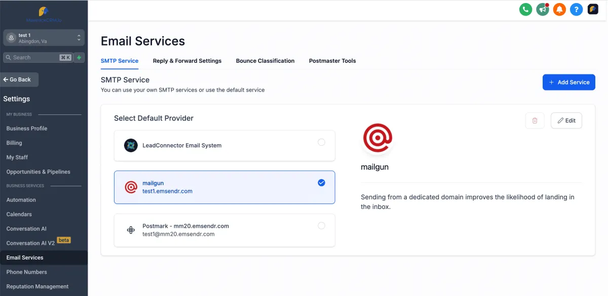 Adds the Mailgun Domain to GHL Location for the Client